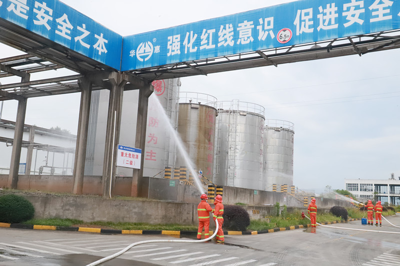 為進一步提升重大危險源安全管控水平以及公司各部門人員應對突發(fā)事故的快速反應、自救互救、應急處置能力,6月25日上午9時,華惠公司開展了甲醇打料泵法蘭發(fā)生大量泄漏應急演練。