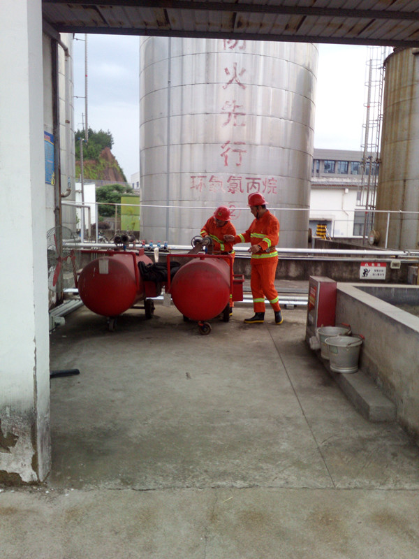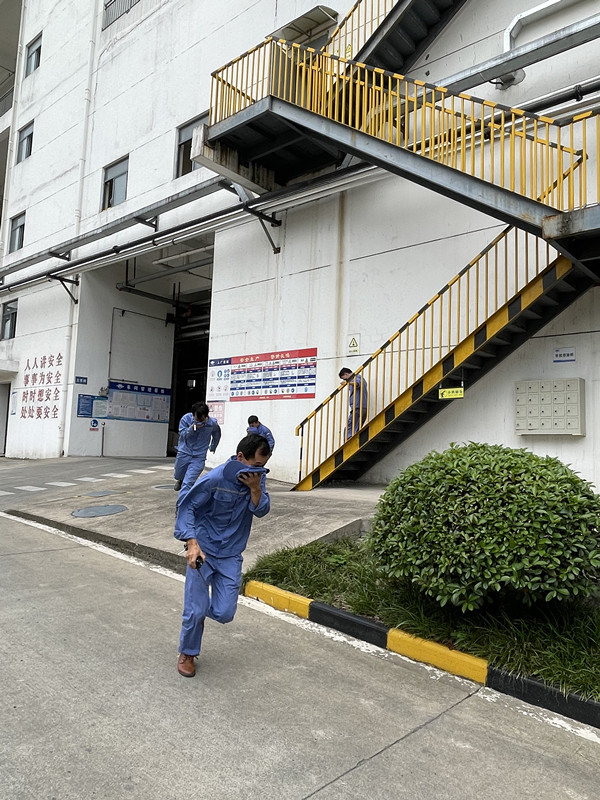 此次演練設置應急行動組、工藝處置組、設備搶險組、疏散救護組、警戒保衛(wèi)組、通訊聯(lián)絡組、環(huán)保監(jiān)測組等七個小組。演練模擬公司罐區(qū)甲醇打料泵法蘭發(fā)生大量泄漏,遇點火源引燃泄漏的甲醇,火勢迅速向甲醇儲罐蔓延的緊急情況。